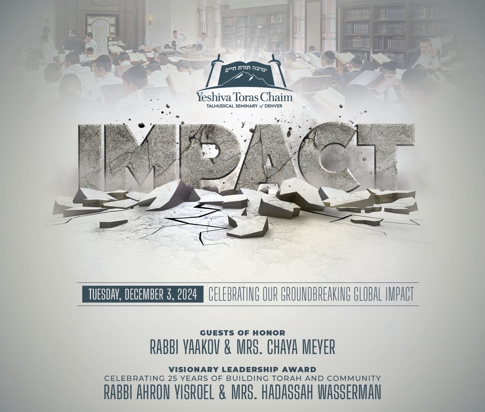 The Denver Community joined together for Yeshiva Toras Chaim’s annual Celebration Event on Tuesday evening, December 3, 2024. The Impact Celebration Event was a celebration after an exceedingly successful campaign that raised over $1.4 million dollars, with over 2,200 donors, to continue developing young men into future talmidei chachamim and leaders of the Jewish People.
